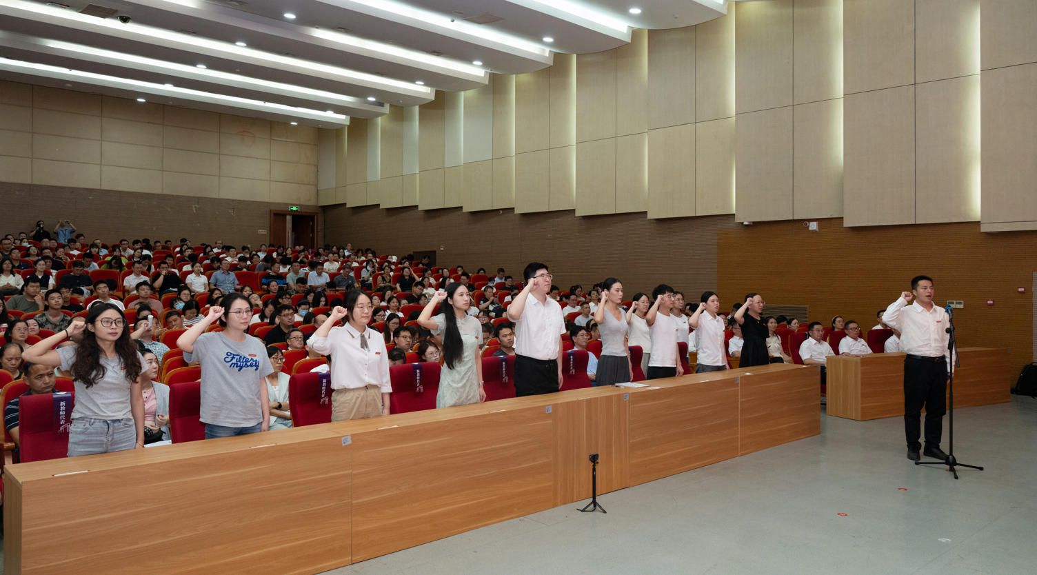 在家校领导出席会议,全体教职工和学生代表参加大会。大会在庄严的国歌声中拉开帷幕,校党委副书记沈岱峰宣读表彰决定。